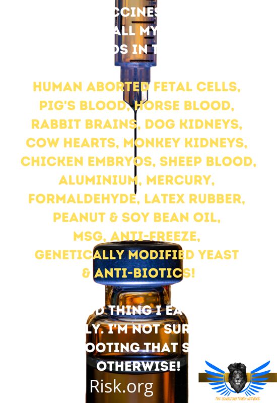 I Love Vaccines So Much They Have All My Favourite Foods In Them Human Aborted Fetal Cells Pig s Blood Horse Blood Rabbit Brains Dog Kidneys Cow Hearts Monkey Kidneys Chicken Embryos